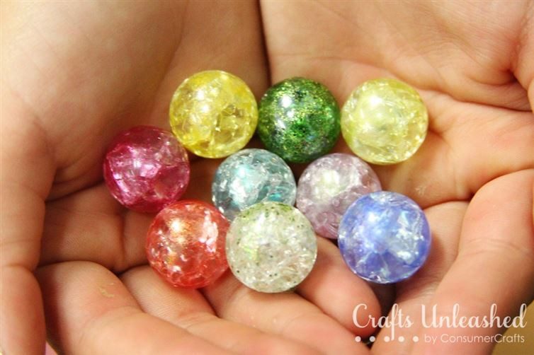 При желании шарики можно покрыть тонким слоем цветного лака для ногтей и добавить блесток.
