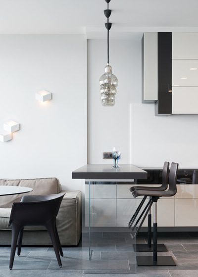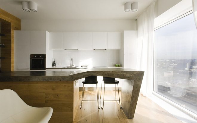 Для небольших квартир хорошо подходит легкая, «парящая» мебель: стулья на тонких ногах, комоды — вместо тяжелых шкафов и кухонное оборудование с открытым цоколем.