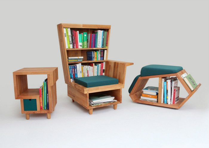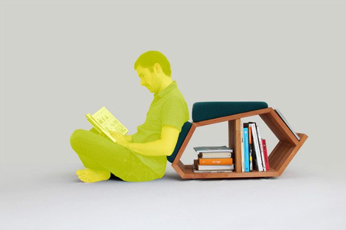 Оригинальный и практичный способ хранения книг предлагает использовать в интерьере дизайнер Люсия Громпоун (Lucia Grompone). Новый тип мебели оценит тот, кто любит читать книги на полу, а не только в кресле. Для этих целей прилагается сквозная тумбочка с удобными мягкими сидениями. Такое трио, универсальный вариант не только для хранения книг. При необходимости эти предметы используются, как дополнительные места для сидения.