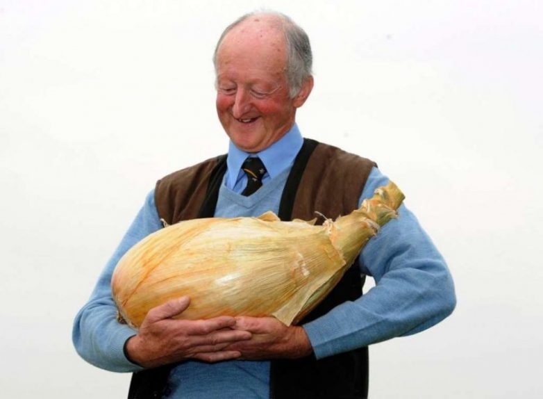 Лук. Селекционер Pete Glazerbrook стал звездой Harrogate Autumn Flower Show в 2011 году, благодаря гигантской луковице, весом 8,2 килограмма.