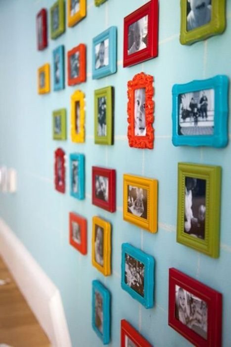 Семейные фотографии в ярких рамках – декор, который точно не даст заскучать. Хозяевам снимки всегда поднимут настроение, а у гостей вызовут интерес. К тому же цветовые акценты отвлекут внимание от главного недостатка прихожей – её размера.