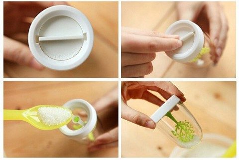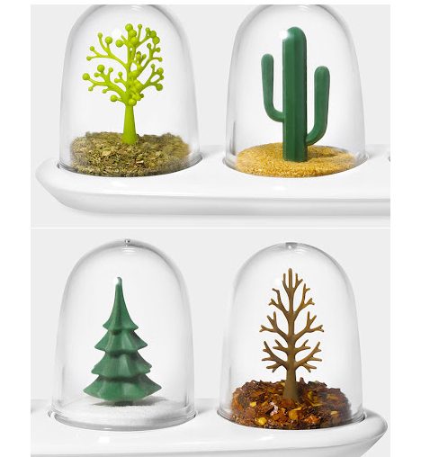 Необычное исполнение обычной перечницы и солонки. В прозрачной банке разместили фигурки деревьев и животных. Смотрите, не пересолите.
