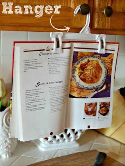 Держатель для книги из вешалки на случай, если все таки придется готовить еду.