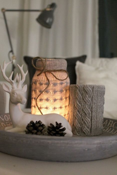 Осенне-зимний период – время уюта, тёплого чая и красивого декора. Коротать холодные вечера приятно за плетением шерстяного гобелена или созданием мягкого яблока из фетра. Можно изготовить оригинальный подсвечник из обычной стеклянной банки, связав для неё чехол из шерстяной пряжи, а внутрь поставить ароматную свечу.