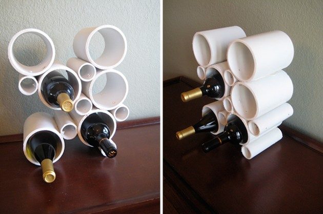 Если вы любите вино и предпочитаете запасаться им впрок, этот винный шкаф с полками из труб ПВХ будет хранить все ваши запасы, упорядоченные и в полной безопасности. Выглядит здорово, а сделать егодостаточно просто.