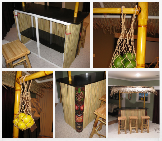 Трубы ПВХ, раскрашенные под бамбук, разные атрибуты вроде экзотических масок и соломенной крыши — эта барная стойка станет отличным напоминанием об экзотических жарких странах и пляжном отдыхе. Читайте подробную инструкцию по изготовлению здесь.
