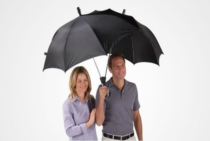 Зонт, который удобно крепится за спиной, что позволяет освободить руки.