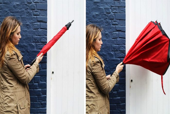 Зонт, который складывается наизнанку, сухой стороной наружу.
