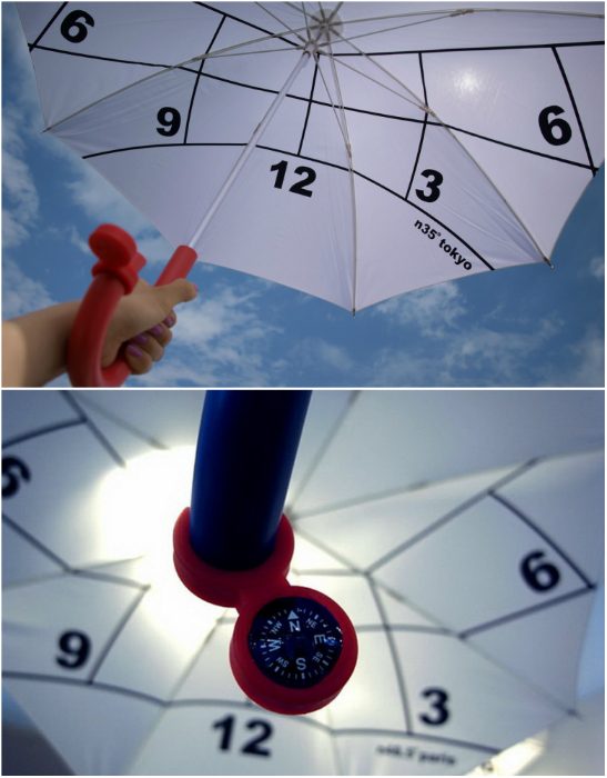 Зонт от японского дизайнера Kota Nezu, оборудованный компасом и солнечными часами.