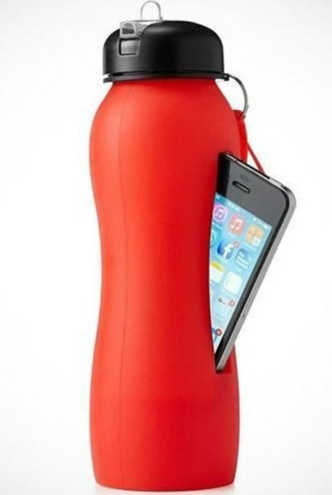 Спортивная бутылка для воды с отсеком для смартфона.