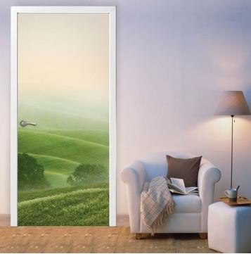 Межкомнатные двери можно декорировать бумажными фотообоями, используя обычный клей, или съемные виниловые наклейки. Чтобы оформить обыкновенные межкомнатные двери, обычно используют стандартные полотна фотообоев размером 86х220 см. Особой популярностью пользуются полотна, на которых изображены живописные пейзажи, горы, городские ландшафты, увеличивающаяся панорамная перспектива.