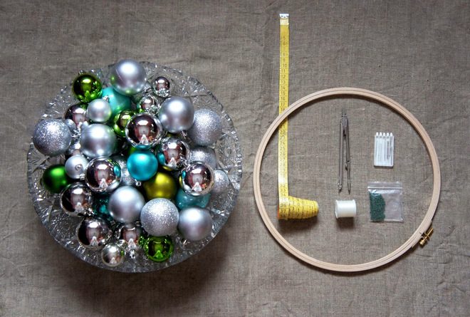 Для начала вам предстоит разобраться с размерами и необходимым количеством ёлочных шаров. Для этого достаточно просто разложить их на полу или на столе.