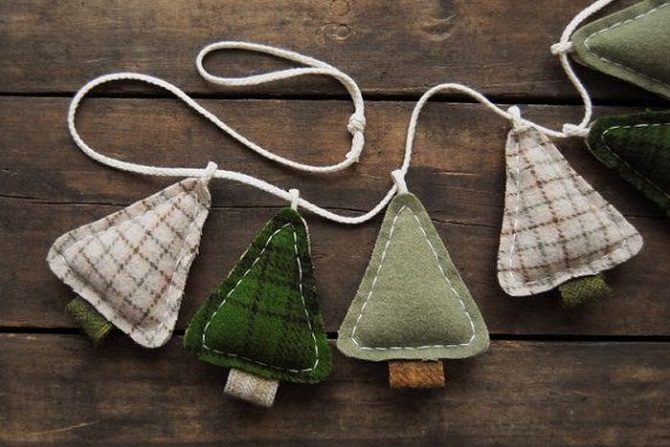 Ещё один материал, который способен создать уютную атмосферу – фетр. Эта разновидность шерстяной ткани уже давно завоевала любовь рукодельниц по всему миру. Из неё легко сделать собственные предметы декора, даже не имея опыта. Достаточно вырезать нужные контуры, сшить между собой кусочки ткани, украсить их пуговицами или нитками – получатся прекрасные ёлочки, снеговики и другие зимние символы.