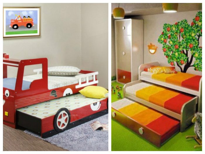 Сложно обустроить интерьер, когда приходится делить одну комнату на двух-трёх человек. А когда это дети, тогда возникает больше сложностей с оформлением интерьера. Ведь важно ещё оставить свободное место для игр. Дизайнеры предлагают использовать выдвижные кровати. Это самый подходящий вариант для экономии места. Такая мебель выручит даже тогда, когда комната узкая.