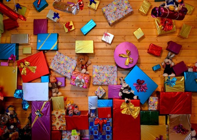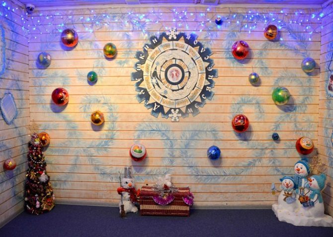Особого внимания заслуживает декор стен. Кстати, идеи интересные, их легко применить в своём интерьере. Например, стена с подарками или с ёлочными шарами, смотрится невероятно празднично и волшебно.