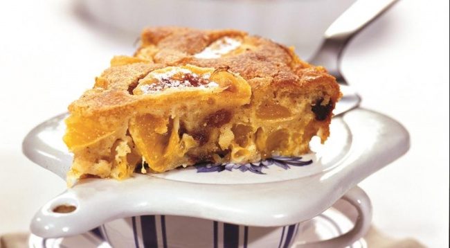 Готовую шарлотку остудить и посыпать сахарной пудрой.