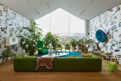 Потрясающе смотрится цветочный принт и живые растения. Расставьте горшки с растениями по комнате и в итоге получите просто невероятный тандем живого и искусственного.