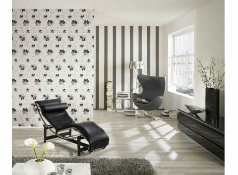 Можно выбрать монохромные обои. Они также отлично смотрятся в гостиной.