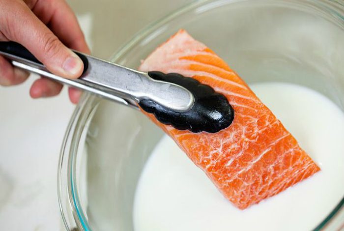 Перед приготовлением замочите рыбные кусочки в молоке на 20 минут, а после просушите их бумажным полотенцем. Такой рецепт поможет избавится от неприятного рыбного запаха во время готовки.