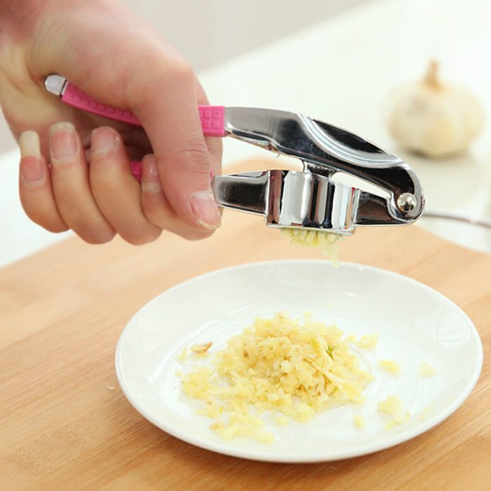 Смажьте руки растительным маслом, чтобы во время измельчения чеснока он не лип к рукам.
