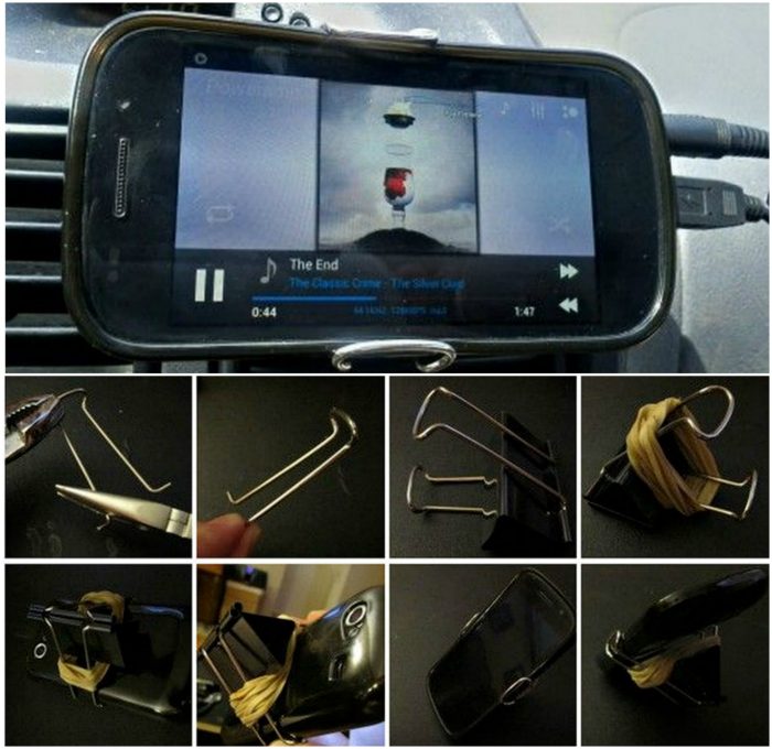 Крепление для навигатора можно легко смастерить своими руками из большого биндера и канцелярских резинок.