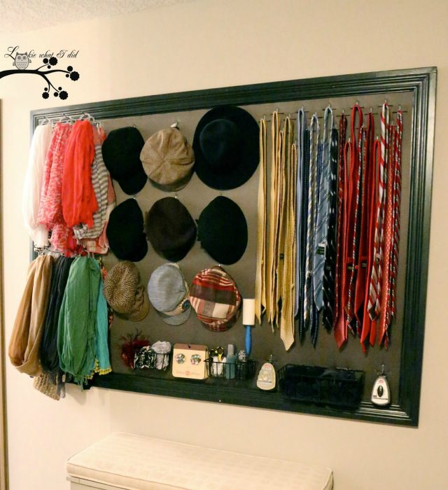 Стильная доска с крючками для хранения шляпок, шарфов и галстуков.