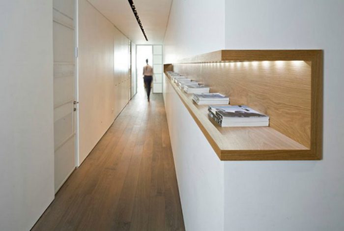 Небольшие полки для книг и журналов можно разместить между изголовьем кровати и стеной.