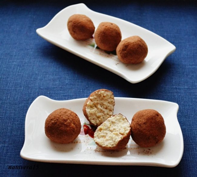 Перед подачей конфетки охлаждаем в холодильнике в течение часа.