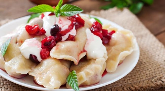 Опускаем вареники в кипящую подсоленную воду и варим в течение 3–5 минут после всплытия. Подаем горячими со сладкой сметаной или вареньем.