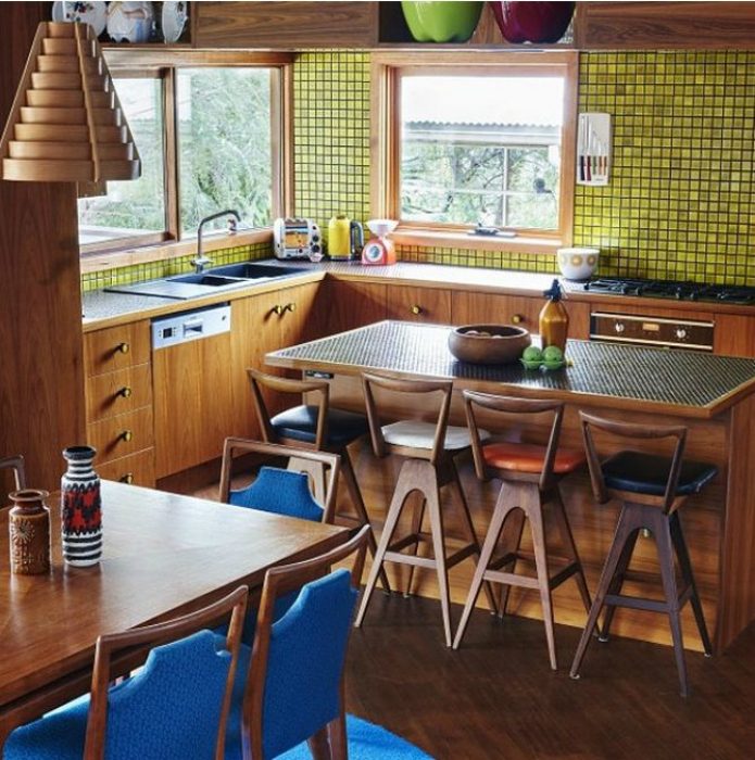 Кухня, сочетающая в себе элементы современного и ретро стилей.