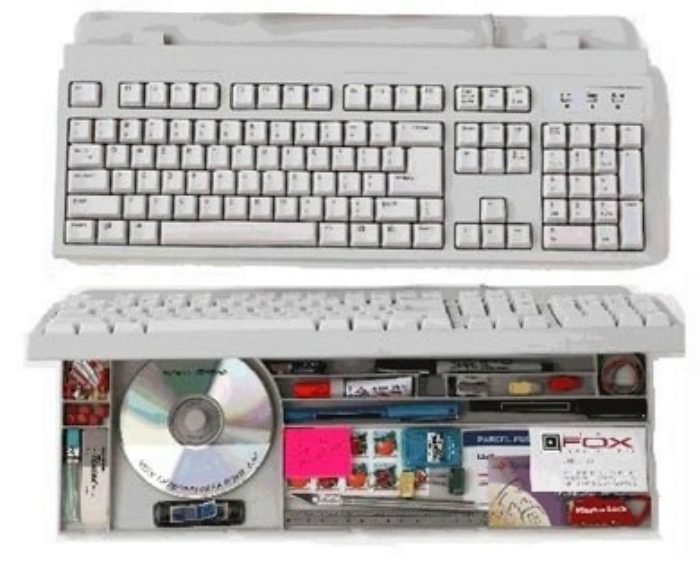 Эта обычная с виду клавиатура имеет небольшое скрытое отделение для хранения дисков, канцелярских принадлежностей и любых других мелочей.