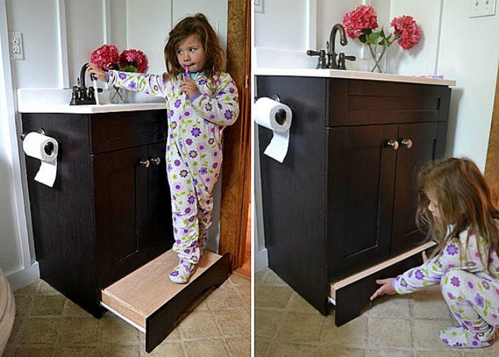 Шкафчик с выдвижной ступенькой идеально подойдет для дома, где есть маленькие дети.