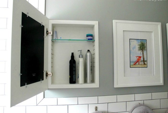 Функциональное зеркало с выдвижными полками позволит разместить множество нужных вещей и идеально впишется в интерьер маленькой ванной комнаты.