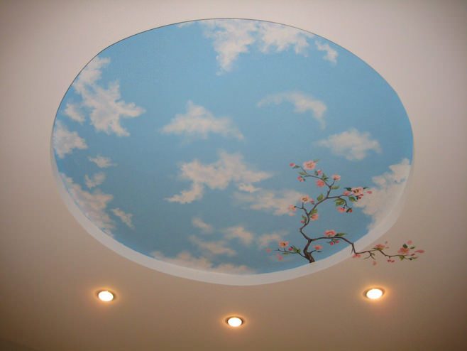 Вариантов отделки потолка множество, безликий белый прямоугольник над головой в руках мастера может принять самую неожиданную форму, изменить свою геометрию и превратиться в картину, зеркало, море.