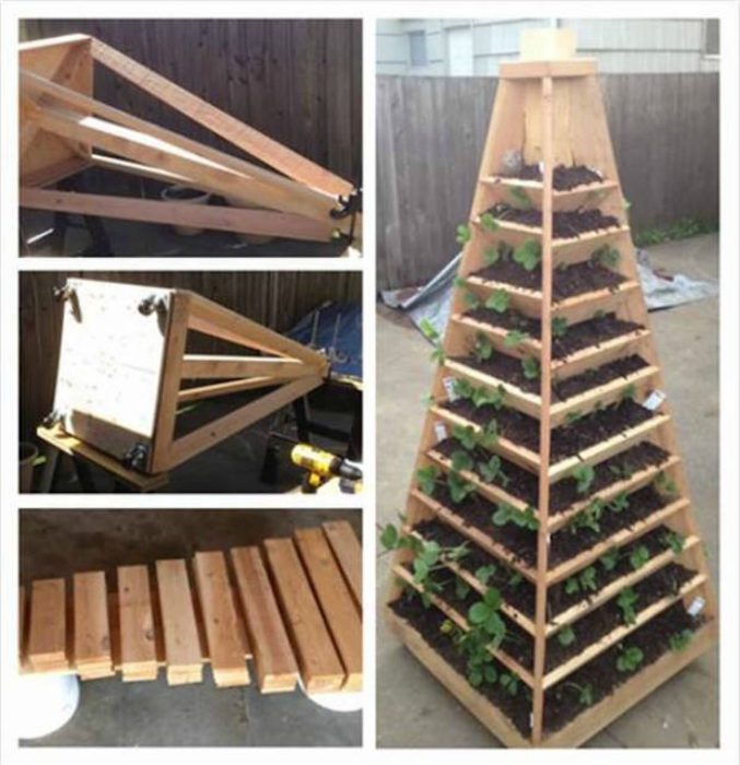 Эффектная и экономичная конструкция для вертикального выращивания цветов или ягод.