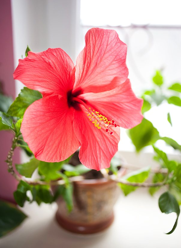 Китайская роза (гибискус). Из маленького отростка может вырасти целое дерево, которое будет радовать своими яркими цветами различных оттенков. Из-за своей неприхотливости гибискус часто становится жителем различных государственных учреждений, например, поликлиник и библиотек. Летом гибискус нужно поливать не реже двух раз в неделю. Если листья начинают увядать — количество поливов нужно увеличить. Пышной китайская роза будет, если периодически прищипывать верхушки боковых веточек. Лучше всего держать цветок в светлом месте, но не под прямыми солнечными лучами.