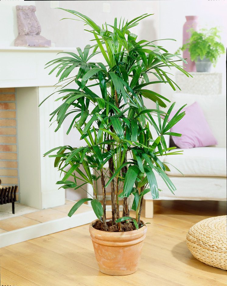 Рапис. Рапис — еще одна пальма, уход за которой до неприличия прост. До сравнительно недавнего времени в комнатном цветоводстве культивировался в основном рапис низкий (вырастает до 1,5 м), но сегодня «набирает обороты» и рапис высокий (легко вырастает до 3 м). Растение достаточно светолюбивое и может даже пережить небольшое количество прямых солнечных лучей, но прекрасно чувствует себя и в полутени. Чтобы крона была красивой и равномерной, нужно периодически поворачивать рапис. К влажности воздуха рапис абсолютно нетребователен, но опрыскивания, особенно летом, ему не повредят. Летом полив обильный, зимой — умеренный, но земля постоянно должна быть влажной.