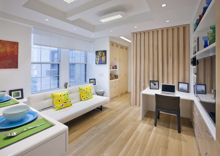 Небольшая 30-метровая квартирка находится на Манхэттене. Её оформлением занимались архитекторы студии Allen + Killcoyne Architects. Они привыкли к практичным решениям, поэтому с удовольствием взялись за работу над этим проектом. Прежде всего, их привлекла квадратура апартаментов, а затем и вытянутая планировка.