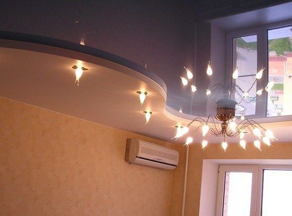 Если ваша спальня значительных размеров, форма потолка может быть разнообразной: арочной, куполообразной или многоуровневой. Очень оригинально смотрятся натяжные потолки в спальне в сочетании с гипсокартонном или лепкой.