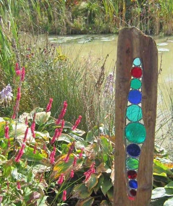 Симпатичная река из цветного стекла украсит любой двор и сделает его еще более ярким.