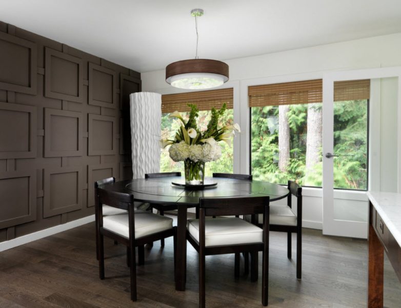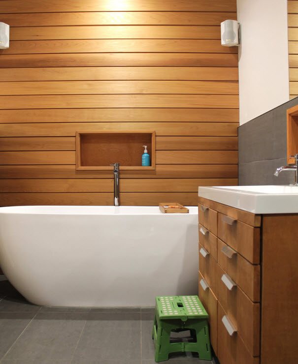 – Панели на нижней части стены. Такое расположение стеновых панелей – это не только эффектное эстетическое, но и практичное дизайнерское решение. Благодаря правильному соблюдению пропорций при декорировании стены можно создать эффект высокого потолка и зрительно увеличить помещение.– Панели на всей стене. Панели из натуральных материалов или с имитацией дерева часто используют для облицовки всех стен в кабинете, частной библиотеке или бильярдной. Такое решение призвано придать строгость интерьеру и продемонстрировать статус его владельца.