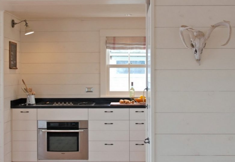 Реечные наборные панели эффективно применяются в небольших помещениях. Рейки монтируются на обрешетку скобами или саморезами. Благодаря пазам и шипам панели легко соединяются, а зазор между ними выглядит аккуратно и не требует дополнительной облицовки.