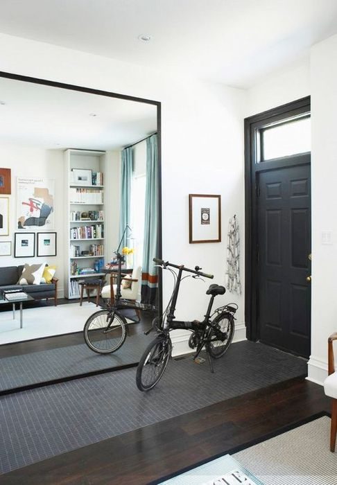 Все привыкли к тому, что зеркало занимает не много места и обычно располагается над комодом, столиком или тумбой. Но в маленькой квартире есть смысл занять под зеркало целую стену или хотя бы её половину. Это значительно увеличит границы пространства.