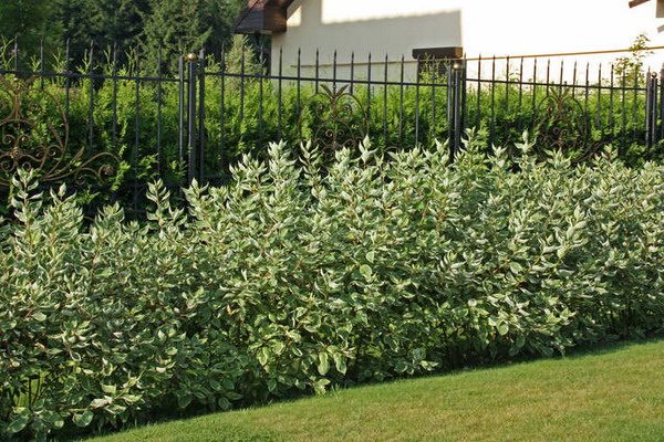 Также нежелательными растениями для живой изгороди являются лох серебристый, рябинник рябинолистный и декоративно цветущая мапинуклен. С ними другая проблема — они ползут, разбегаются и способны заполонить весь сад корневыми отпрысками. Конечно, их можно контролировать, но в живой изгороди применять все же не стоит.