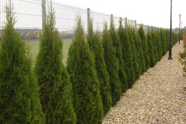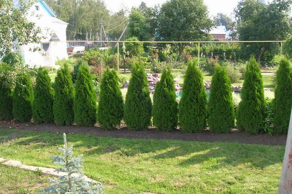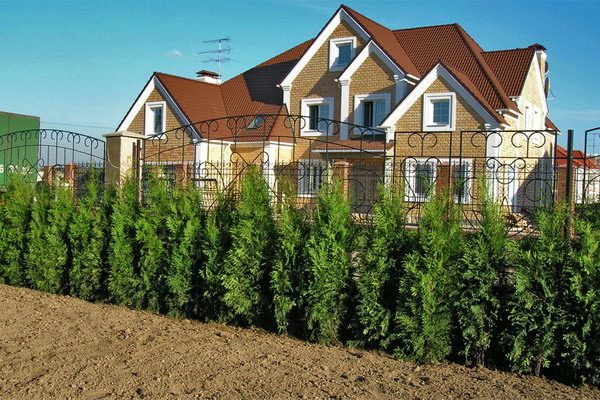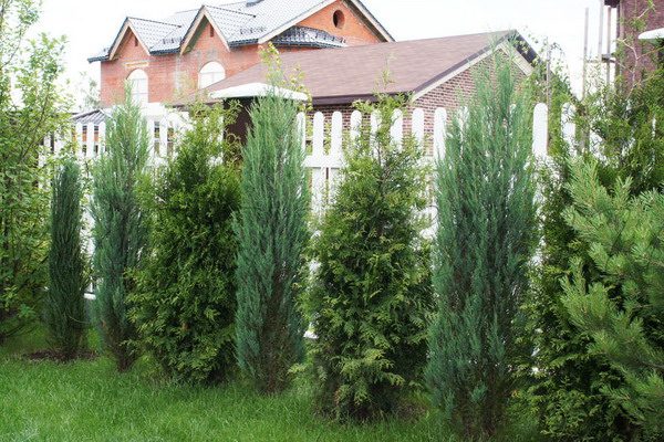 В средней полосе России для создания живой изгороди своими руками лучшими растениями являются пирамидальные и колонновидные сорта туи западной и можжевельника обыкновенного, а также сорта и виды ели.