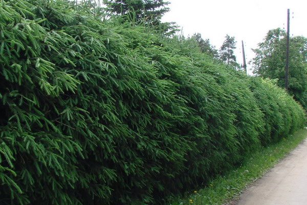 Изгородь важно стричь регулярно, так как для ели обрезка древесины старше 3 лет нежелательна, то есть исправить запущенную или испорченную изгородь невозможно. Обрезку проводят до получения заданной высоты изгороди, формируя трапециевидный либо прямоугольный профиль.