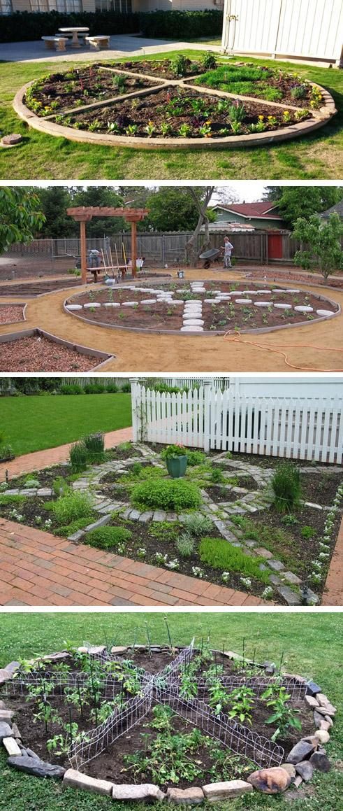Этот оригинальный вид огорода позволяет выращивать наиболее популярные овощи и зелень рядом с домом на любой солнечной площадке. Декоративный вид посадкам придает круглая форма сада диаметром от 2 метров, разбитая на несколько сегментов для овощей разного вида.