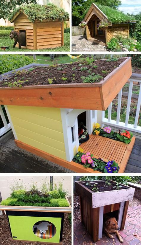 Под огородные посадки можно приспособить как плоские, так и скатные крыши будок. Несомненным плюсом является то, что под эти мини-огородики не требуется дополнительной площади на участке. А домашние животные автоматически получают более комфортное помещение, поскольку крыша не перегревается летом, а зимой слой грунта препятствует ее чрезмерному охлаждению.На будках можно выращивать любые растения с неглубокой корневой системой. В зависимости от расположения будки во дворе, выбирают соответственно солнцелюбивые или тенелюбивые виды зелени, ягод или овощей. Как и в любых других декоративных огородах, можно сочетать съедобные растения с цветами.
