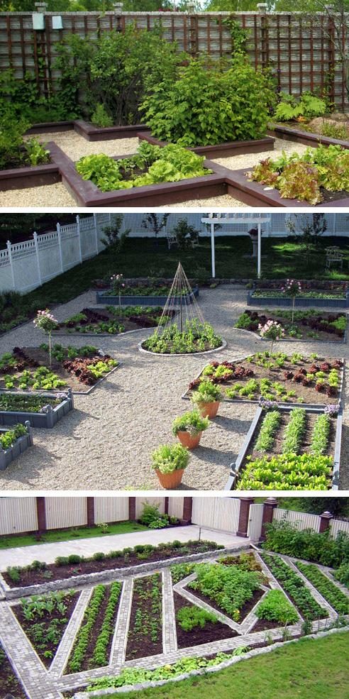 Разбейте огородные грядки на несколько сегментов, образующих геометрические узоры на выделенной площади. Это может быть как сочетание строгих многоугольников, кругов, так и более сложных фигур, вплоть до орнаментов или криволинейных композиций. Внутри каждого сегмента высаживайте растения так, чтобы и они, в свою очередь, создавали выразительные композиции. Чередуйте посадки с разным оттенком наземной части, растениями разной высоты.