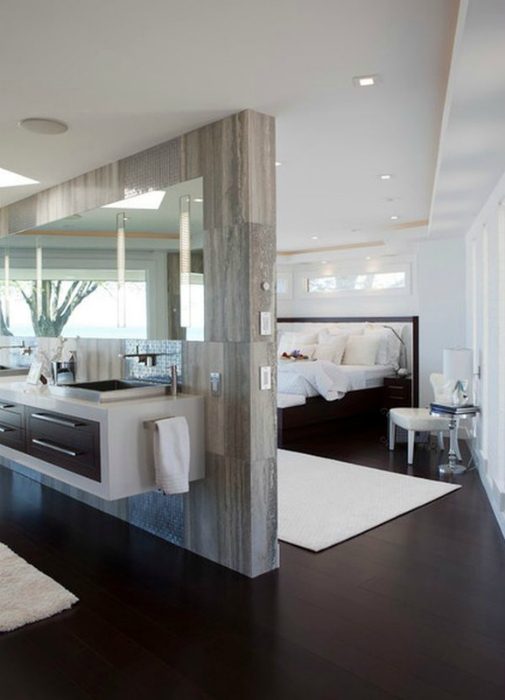 Глухая перегородка для разделения пространства между спальней и санузлом.